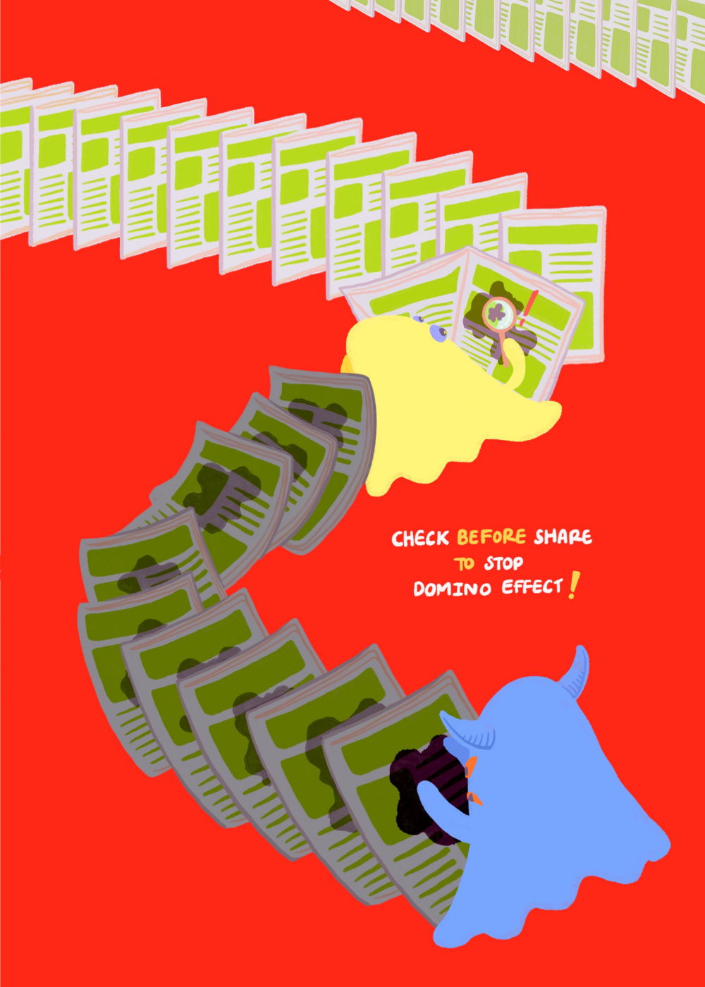 News is like domino if one of the domino falls the rest of it will continue falling down too which is called domino effect. As same as the news if one of the fake news was spreading the rest of it will spread too. Therefore it will make people believe or misunderstanding in something we didn’t realize before, so in the end it will cause bad consequences. In the other hand to stop the domino effect of the fake news is to check what is true and false before sharing the information.