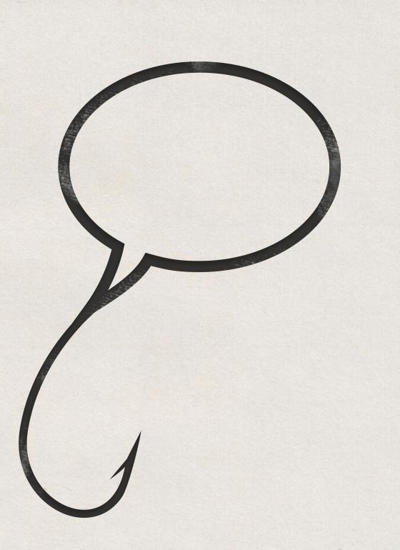 Talking bubble with a fishing hook, news that try to draw people's attention. Pay per view.