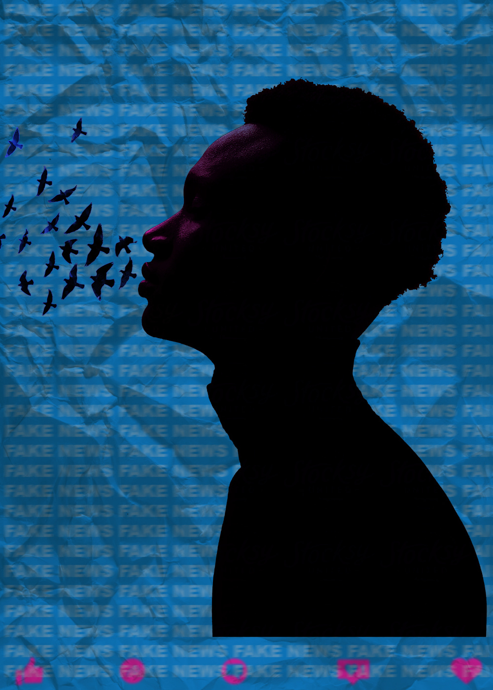 There is an old saying in Romania and translated to english is something like this: "Walking with the painted crow". In english this would be " to draw a red herring across the path". This image that I created illustrates a person who always tells lies ( the crows coming out of his mouth) and an old piece of crumpled paper that illustrates the lies written in media or social networks.