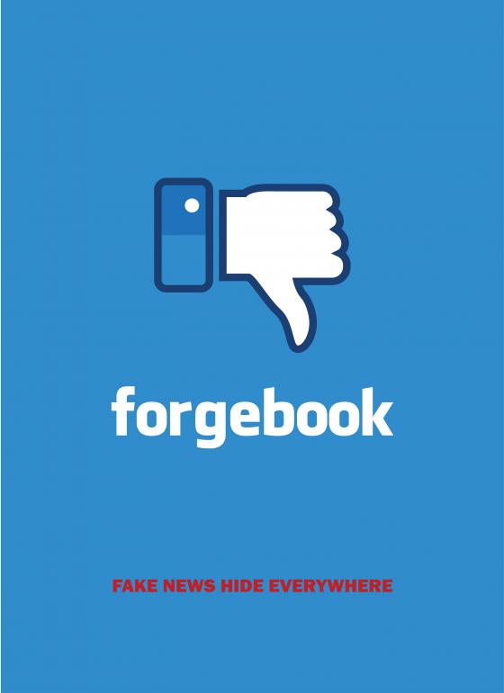 The unspoken dangers of the unlimited freedom of speech allowed on the Internet falls mostly on the diffusion of fake news that takes place at it's various platforms. To represent this reality, the present poster jokes around with the name and logo of one of the most famous social networks, Facebook.