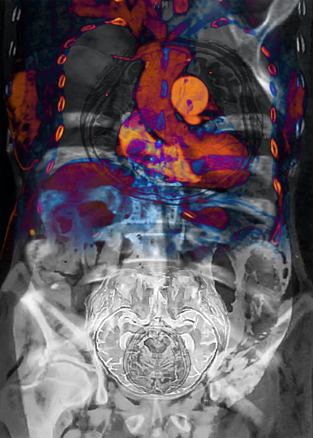 This work continues the design thinking of 《Brain universe》. When the blood supply to the brain is blocked, the body will continue to lose control from top to bottom. The chest is the inner execution space. With the blood flow into the circulation, various organ function damages are caused, as enter the channel space from top to bottom like a CT scan.