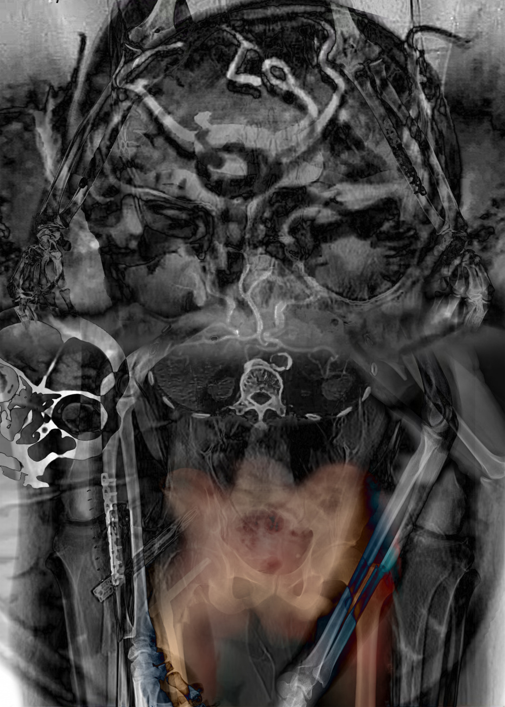 This is the third piece of the series. It tells about act on movement of the muscles that govern when the brain is damaged. The upper and lower limbs can be regarded as the external execution space. When the corresponding movements cannot be performed, it will show weakness or difficulty in walking. This series of works is to simulate the illusory space reality by stacking CT scan and MRI images, such as sending signals to the brain to create a conscious world of the brain in a vat.