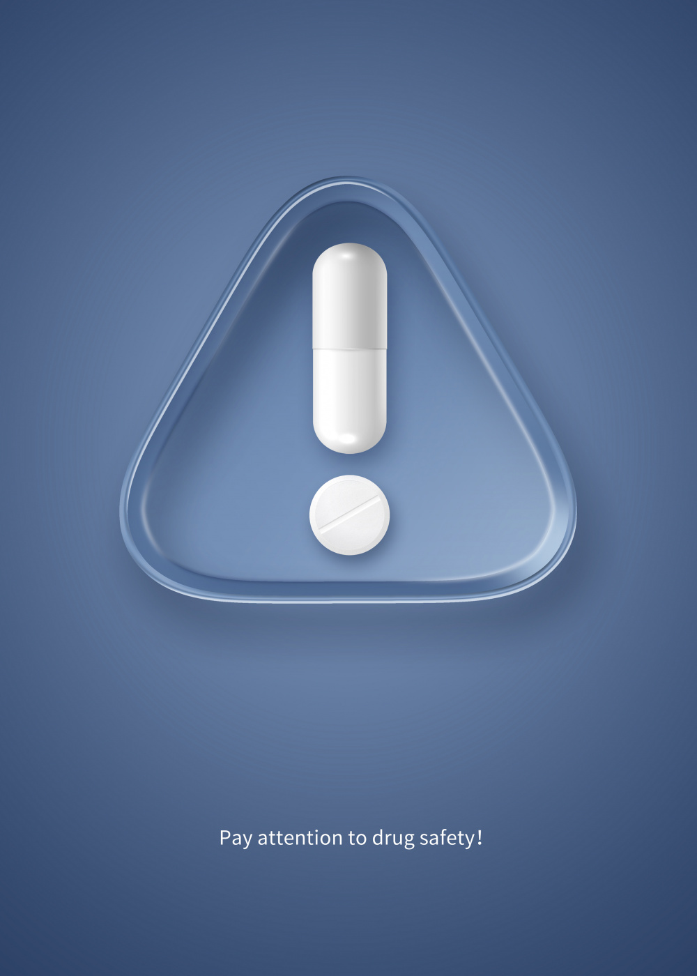 The combination of drugs into the shape of exclamation marks means that the quality of drugs is of great importance, and everyone is reminded to pay attention to drug safety.