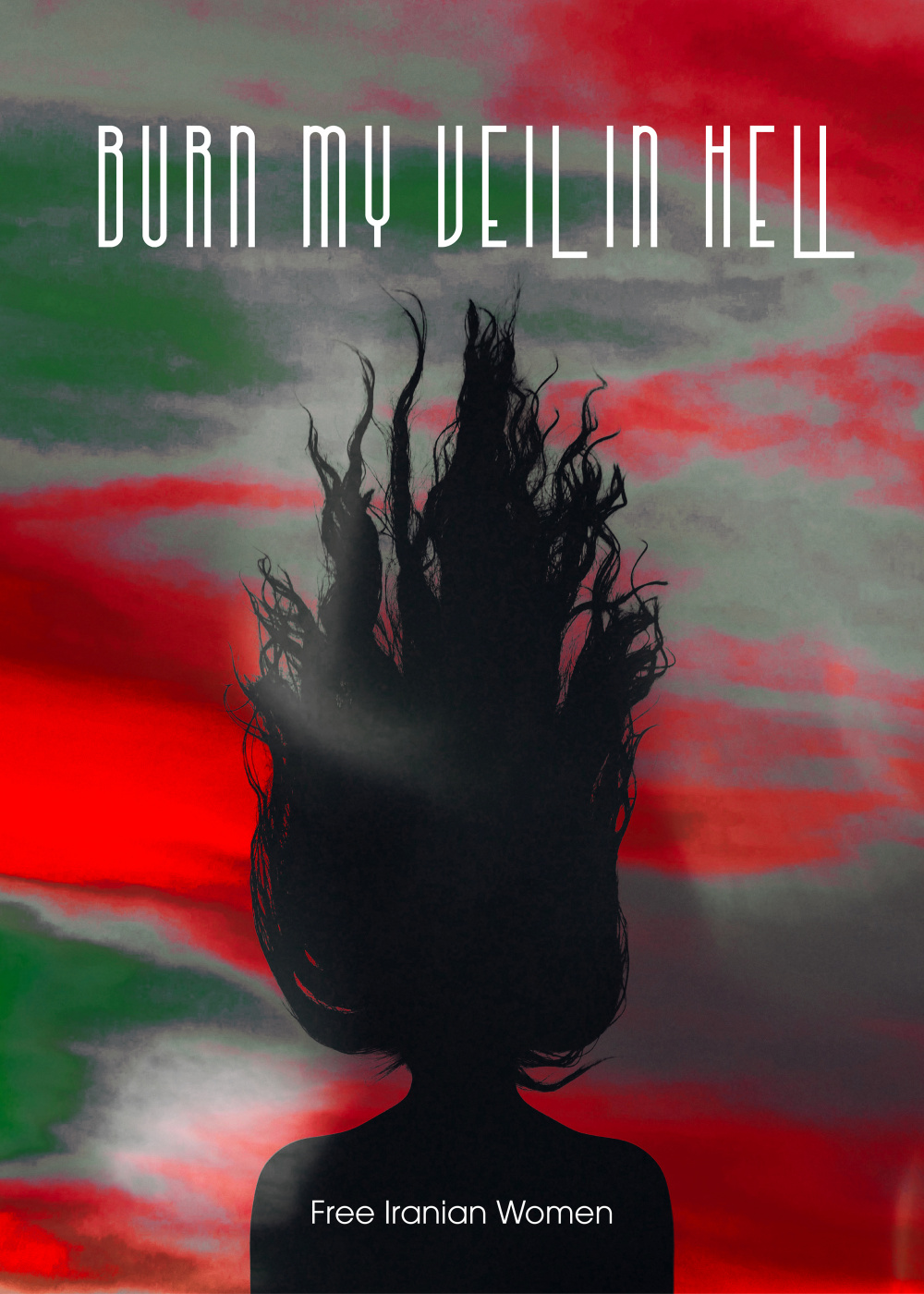 Burning the symbol of oppression of Iranian Women in the Islamic Dictatorship. Freedom for ALL!