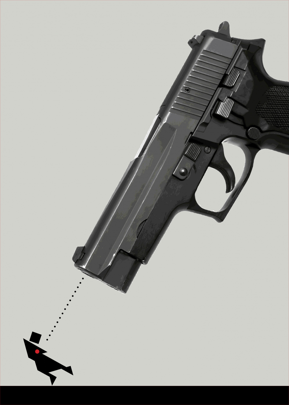 The proportion between the huge revolver and the fragile figure of the injured woman who is still trying futilely to protect herself is the shameful scene that reproduces itself day after day like an uncontrollable epidemic.